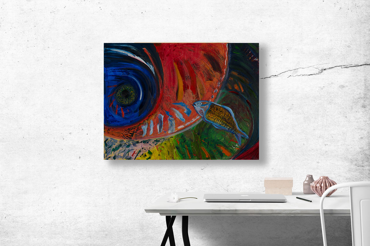 מערבולת בים, דג קטן נמשך אל מערבולת צבעונית בים,