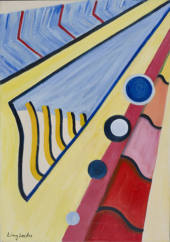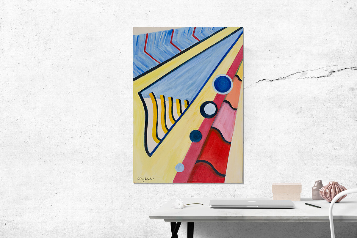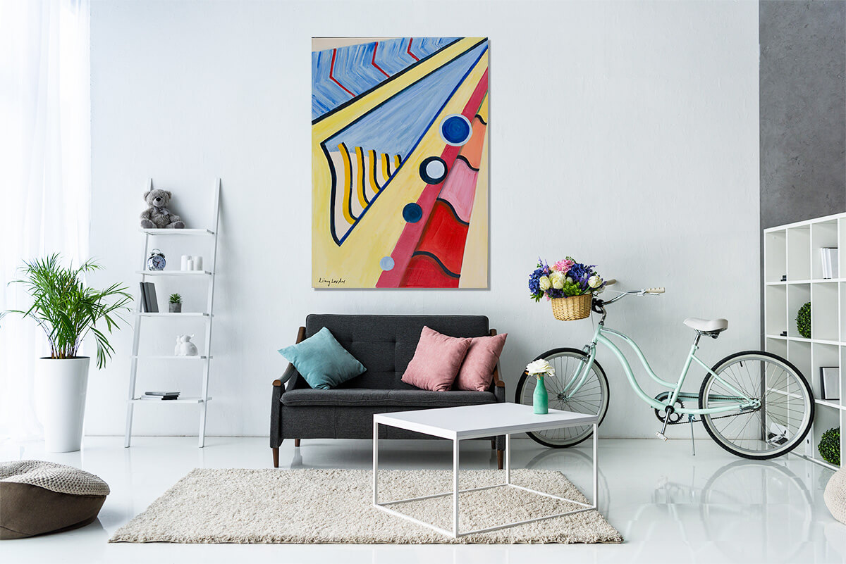 אבסטרקט בהשראת אור שמש, צבעוניות עזה אך נעימה. צורות גיאומטריות יוצרות תנועה.